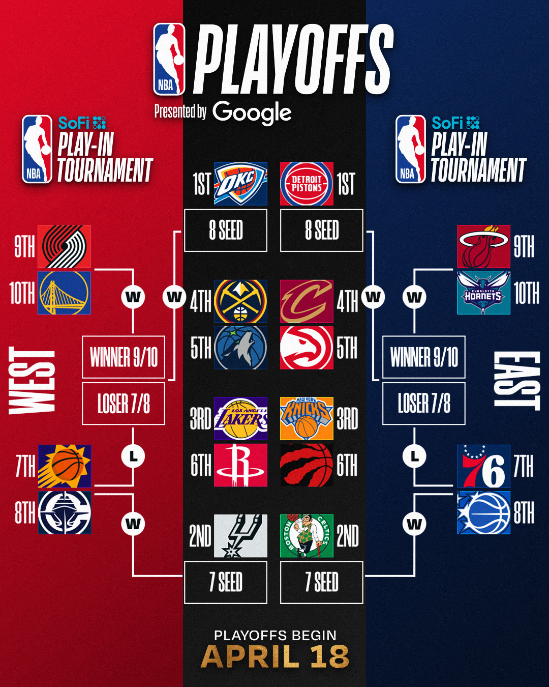 2、附加赛区卡位战,快船输给开拓者,但凭借少输一场优势继续坐着西部第8;